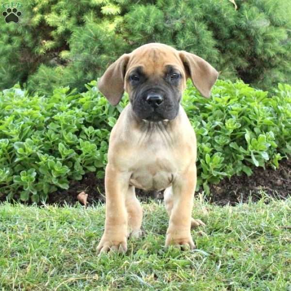Here comes Billy, a playful African Boerboel puppy who is socialized with children. This cute pup is vet checked and up to date on vaccinations & dewormer plus he comes with a 30 day health guarantee provided by the breeder. If you would like to meet this friendly fella, please call the breeder today!